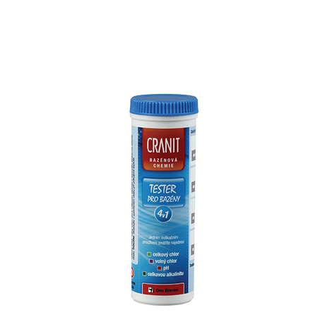 Cranit Tester pro bazény 4v1 10 ks testovacích proužků tuba v blistru namodralá