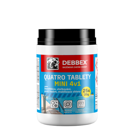 Cranit Quatro tablety Mini – dezinfekce, proti řasám, vločkování, stabilizace 500 g dóza namodralá