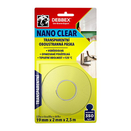 Transparentní oboustranná páska NANO CLEAR 19 mm × 2 mm, délka 2,5 m transparentní