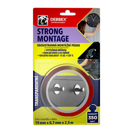 Oboustranná montážní páska STRONG MONTAGE 19 mm × 0,7 mm, délka 2,5 m transparentní