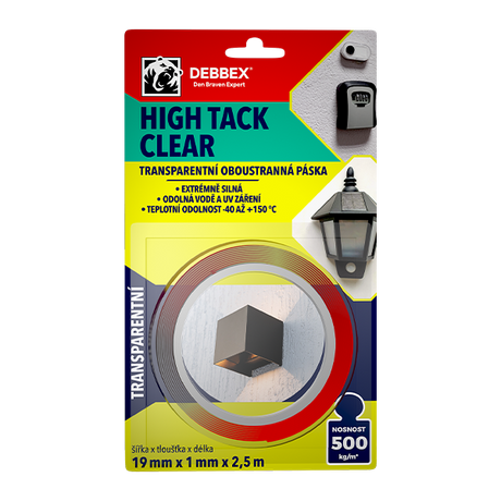 Oboustranná páska HIGH TACK CLEAR 19 mm × 1 mm, délka 2,5 m transparentní