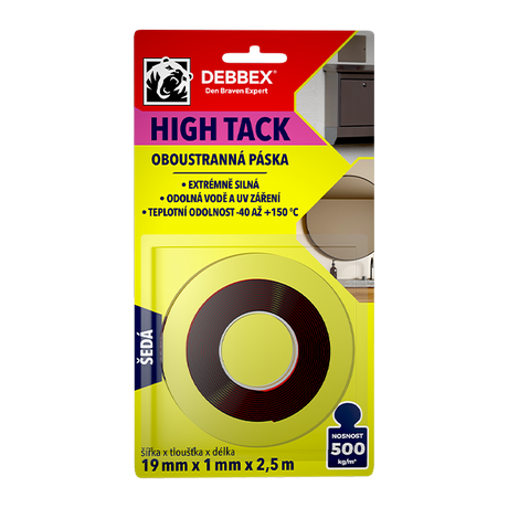 Oboustranná páska HIGH TACK 19 mm × 1 mm, délka 2,5 m šedá