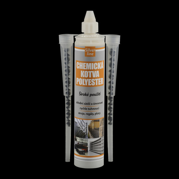 Dvousložkový chemický kotvící systém na bázi polyesterových pryskyřic pro velice rychlé kotvení s vysokou pevností, vytvrzující chemickým procesem, obsahuje styren.