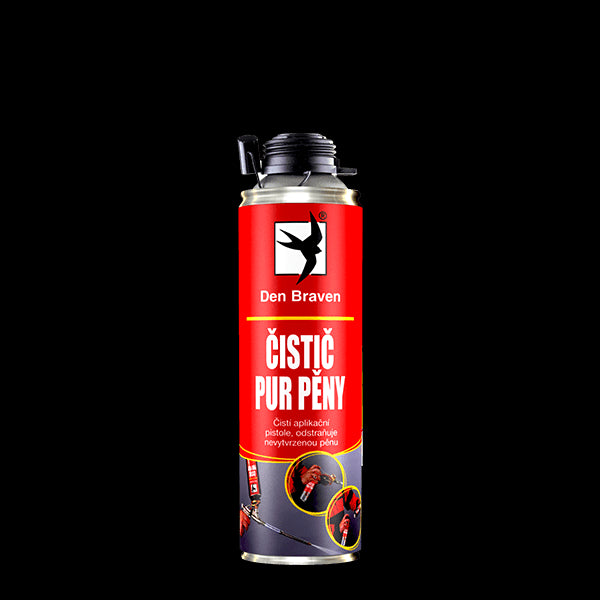 Čistič PUR pěny slouží k snadnému čistění pracovních pomůcek potřísněných nevytvrzenou polyuretanovou pěnou. Čistění ventilů a aplikačních částí NBS pistolí na polyuretanovou pěnu.
