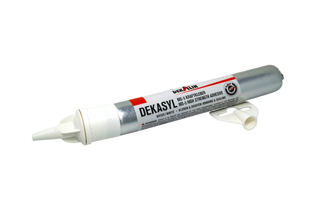Konstrukční lepidlo Dekasyl MS-5 je vhodné pro lepení polyesterových dílů na železné rámy, hliníkových rohových profilů, solárních panelů, satelitů, rámů, krytů kol apod.