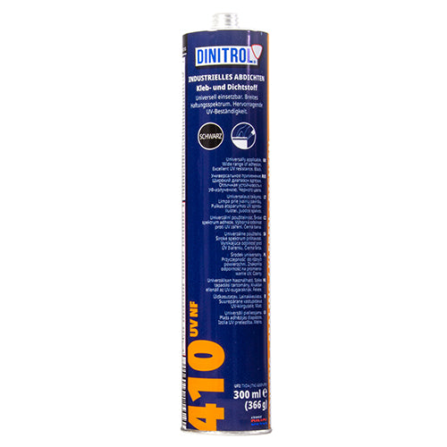 DINITROL 410 UV NF je 1-složkové polyuretanové lepidlo a tmel s dobrou odolností a UV stabilitou. Tmel je rychleschnoucí a elastický a lze jej přetřít většinou barev.