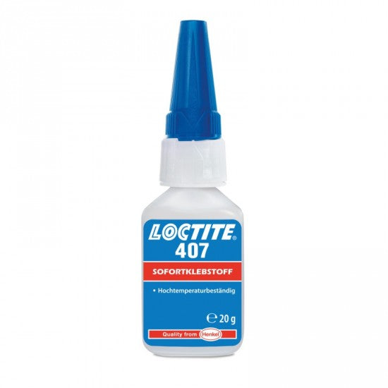 Velmi odolné vteřinové lepidlo Loctite 407. Představuje zvýšenou odolnost především proti vlhkosti, ale i vyšší teplotě, což předurčuje jeho použití. Vhodné je na lepení většiny běžných materiálů.