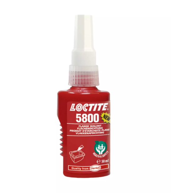 Loctite 5800 je jednosložkový tmel pro těsnění spojů kovových přírub. Loctite 5800 je vhodný na kovy, těsnění má červenou barvu a okamžitě utěsní mezeru proti nízkým tlakům. Těsnění má vynikající chemickou a tepelnou odolnost (-55 až +180 °C). Má bílý bezpečnostní list - neobsahuje žádné nebezpečné látky.