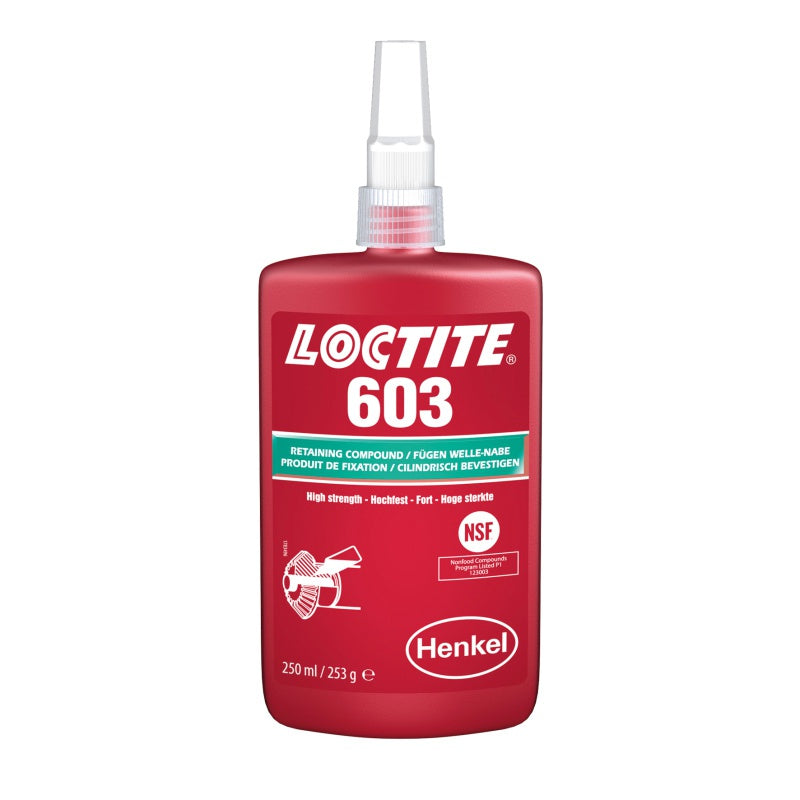 Profesionální lepidlo Loctite 603 využijete na upevňování ložisek a při spojování válcových součástí, typicky kovových. Po vytvrdnutí, které probíhá ve spáře široké až 0,1 mm mezi dvěma kovovými povrchy, se Loctite 603 vyznačuje především vysokou odolností. Díky tomu, že odolává vibracím a rázům, ale také teplotě až 150 °C, nedochází k popraskání spoje, jeho prosáknutí či úplnému uvolnění. Další výhodou je tolerance vůči olejům. Loctite 603 se tak hodí nejen do průmyslových závodů, ale i do menších, především, výrobních zařízení – eliminuje totiž i stykovou korozi, což se hodí prakticky u jakéhokoli zařízení.