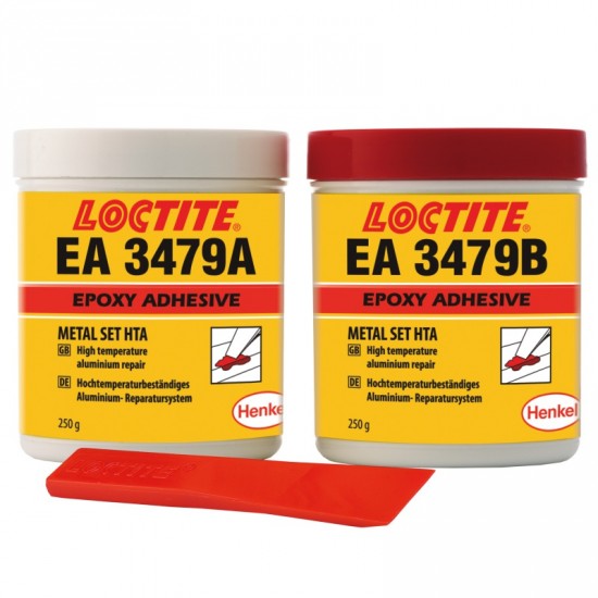 Tekutý kov Loctite EA 3479 určený k opravám a ošetření kovových součástí. Vyznačuje se nestékavostí a velmi vysokou odolností vůči vysokým teplotám do 190 °C.