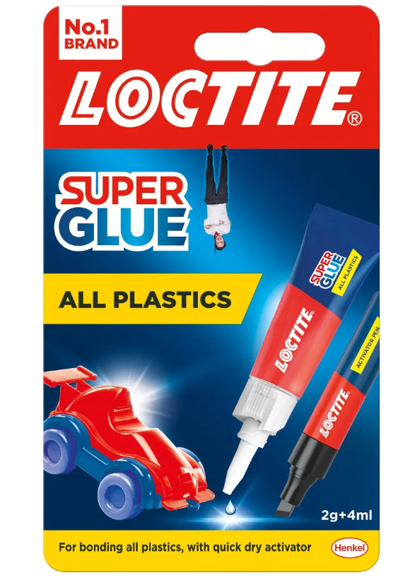 Loctite Super Bond All Plastics je speciální sekundové lepidlo pro lepení všech druhů plastů. Lepí PVC, PP, PE, nylon, vinyl, plexisklo, ABS a další plasty. Nepoužívejte na lepení předmětů, které přicházejí do styku s tekutinami.