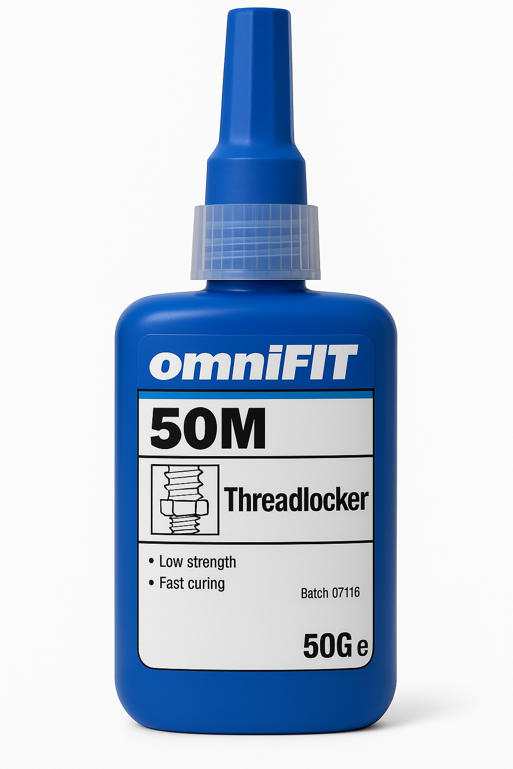 Omnifit 50 M je nízko pevnostní zajištovač šroubů pro použití tam, kde je potřebná snadná demontáž. Zejména vhodný pro zajišťování všech druhů závitových spojů proti vibracím a rázům. Pro utěsnění trubkových závitů až do rozměru 2 palců, závrtných šroubů, čidel apod. Omnifit 50 M vytvrzuje bez přístupu vzduchu ve spáře mezi kovovými povrchy.