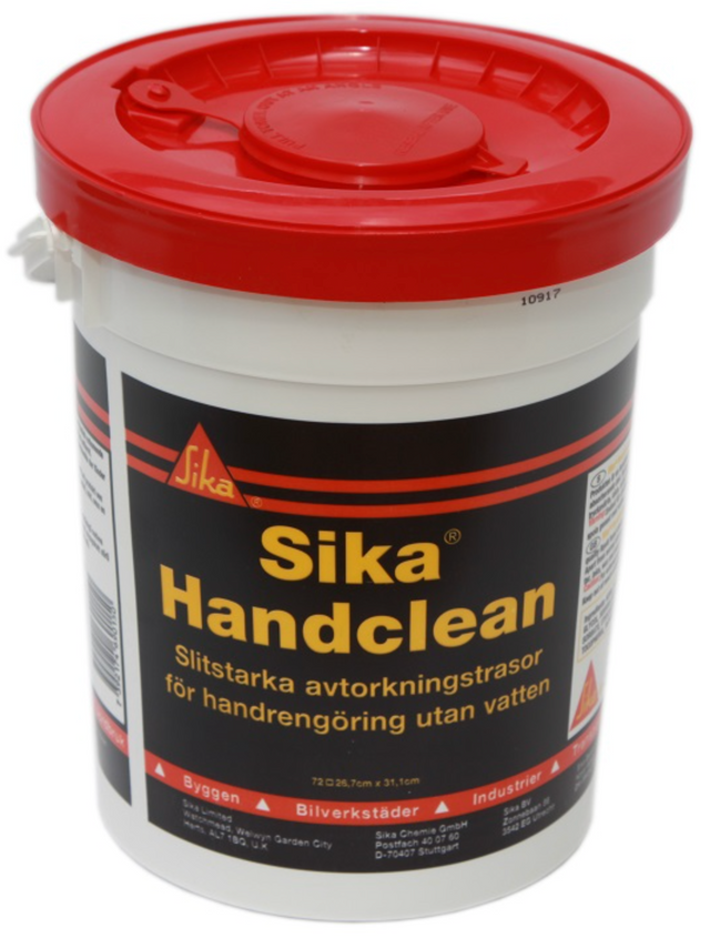 Sika Handclean je prostředek na mytí rukou od polyuretanových lepidel, tmelů, od barev, pryskyřic, asfaltů, vosků, maziv a olejů a dalších znečištění. Sika Handclean je vyráběn v souladu s normami kvality ISO 9001.