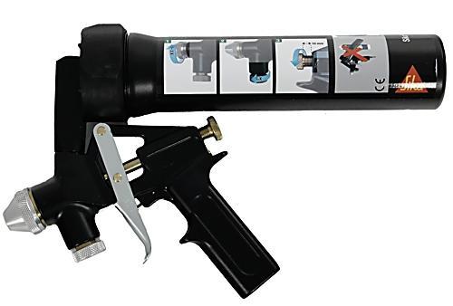 Sika SprayGun je pneumatická stříkací pistole pro nanášení tmelů - polyuretan, ms polymer, hybrid. Určeno pro nástřikové hmoty SikaFlex 529AT. Je navrženo pro použití jako nástřikové flexibilní těsnění pro přeplátované spoje, opravy kolizí a karosářské aplikace.