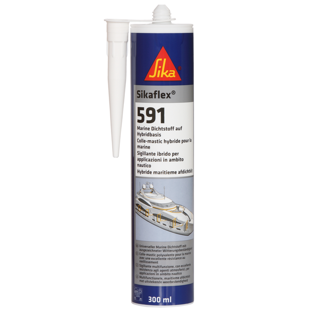Sikaflex®-591 je univerzální tmel určený pro námořní aplikace. Vhodné pro flexibilní těsnění spojů odolná proti vibracím a různá další vnitřní a vnější těsnění. Sikaflex®-591 má dobrou přilnavost k mnoha podkladům běžně používaným v námořním průmyslu.