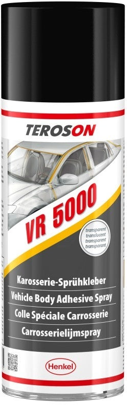 TEROSON VR 5000 je lepidlo ve spreji, které je určeno primárně na opravy karoserií. Slouží pro lepení pevných slepů obložení z různých materiálů, například z tvrdých i měkkých pryží, kůže, plsní a jiných tlumících materiálů, měkkých pěnových látek a podobně. TEROSON VR 5000 využijete jednak pro domácí opravy, ale nepostradatelný je především pro všechny automobilové dílny a automobilový průmysl obecně. Doporučujeme před lepením důkladně očistit styčné plochy a nádobu vždy před aplikací protřepat. Po aplikaci lepidla ho nechejte asi 10 minut odvětrat a poté k sobě lepené části silně přitlačte, čímž dojde k přilepení.