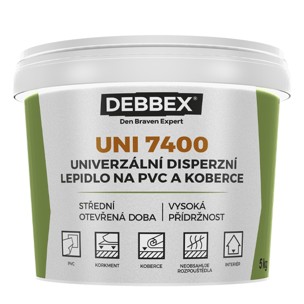 Univerzální bezrozpouštědlové podlahové lepidlo, na bázi disperze. Vytváří trvale pevný, elastický spoj. Okamžitě a snadno použitelné, lehce roztíratelné. Vysoká přilnavost k savým materiálům. K lepení podlahových krytin na savý podklad. Použití: PVC na pěnovce, PVC s filcem, CV krytina, korek textilní koberce (podélné vlákno), na betonové podklady, nivelační hmoty, minerální podklady, dřevotřískové a cementotřískové desky, lze použít i překližky, polystyren či polyuretan.